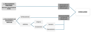 Vejamos um quadro esquemático ilustrando a estrutura procedimental dos dois procedimentos (1. Procedimento de Inventário e 2. Partilha e Procedimento Tributário):